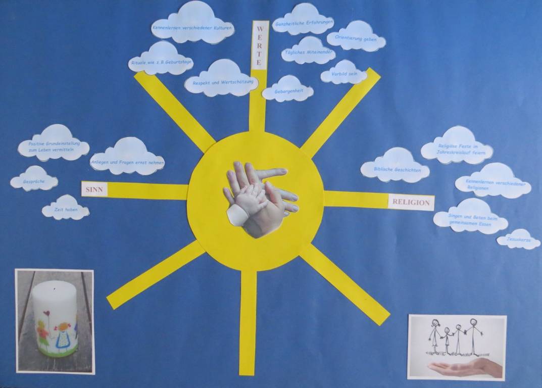 Grundlage unserer pädagogischen Arbeit ist der Orientierungsplan des Landes Baden-Württemberg und das evangelische Profil der Landeskirche Baden. Wir setzen die Kinder in den Mittelpunkt des Geschehens und orientieren uns an deren individuellen Bedürfnissen und Voraussetzungen. Wir arbeiten teiloffen mit einem strukturierten Tagesablauf und bieten den Kindern somit die Orientierung, die sie im Alltag brauchen. Unsere pädagogische Arbeit richtet sich unter anderem nach dem Jahreskreis und den christlichen Festen.